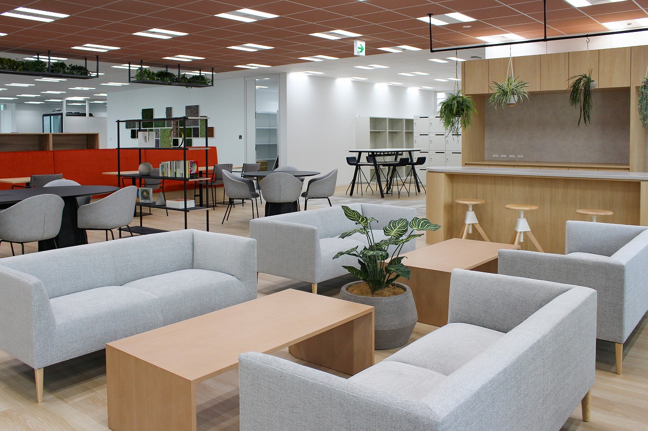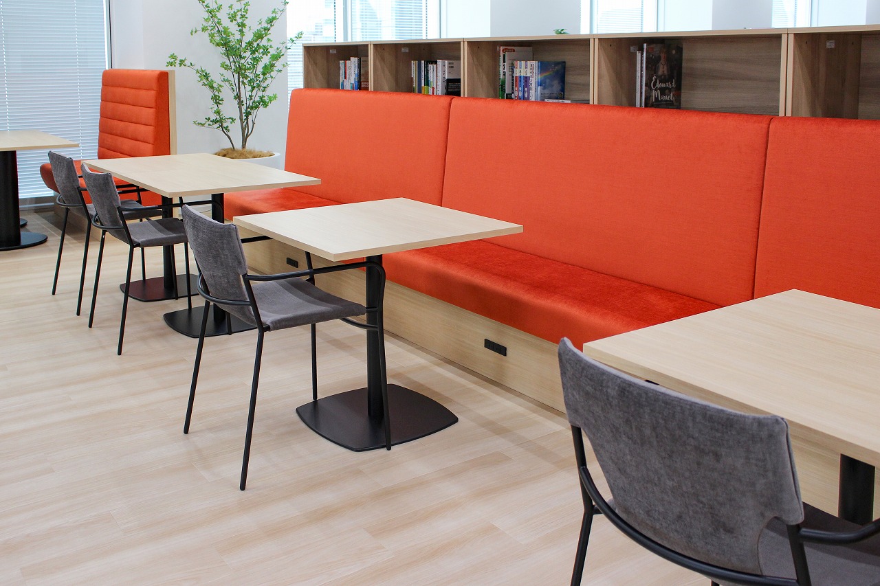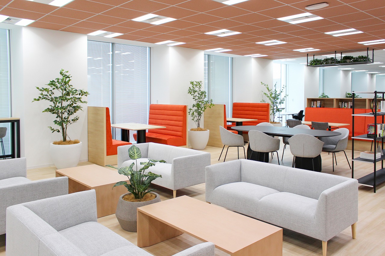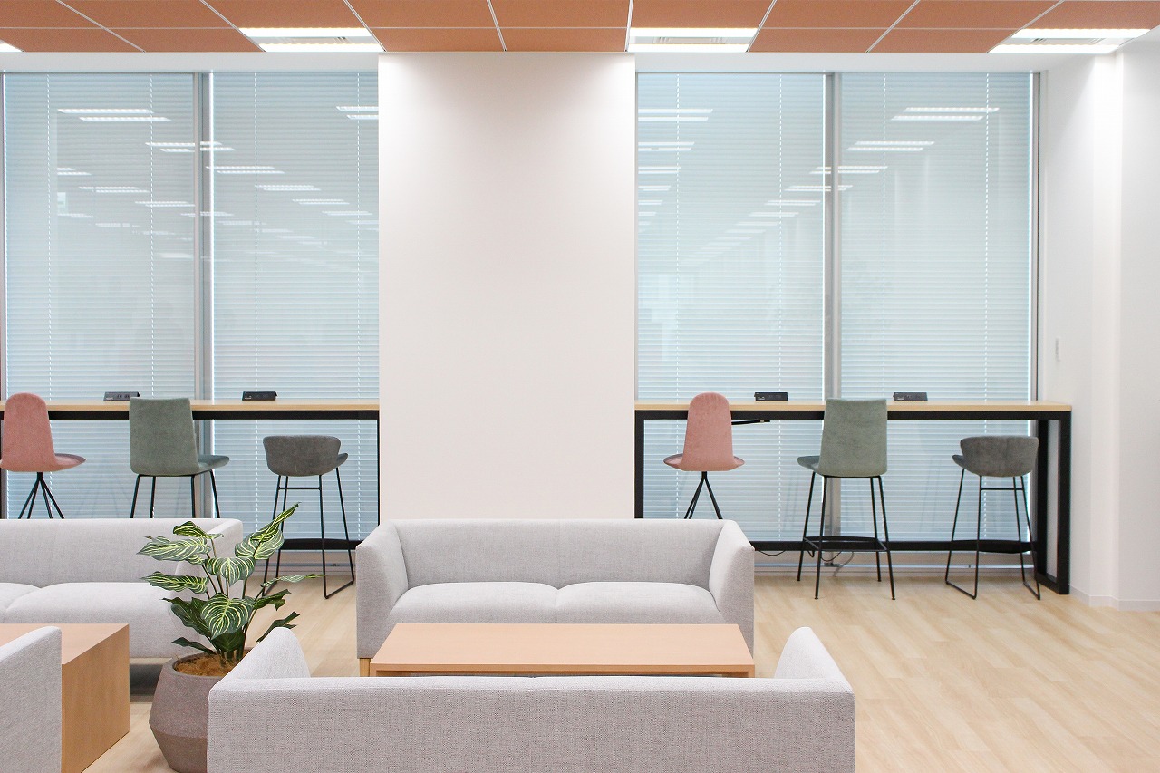 ボックス席、カフェ席、ミーティングスペース、カウンタースペースなど、用途に応じたエリアを配置することで、多様な働き方に対応できるレイアウトとなっています。
