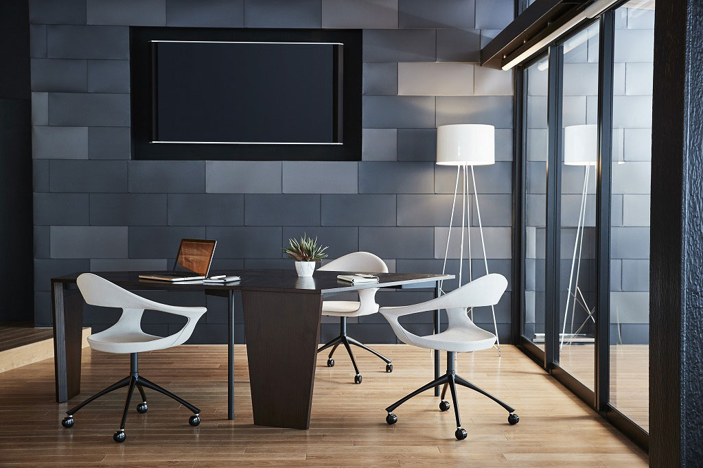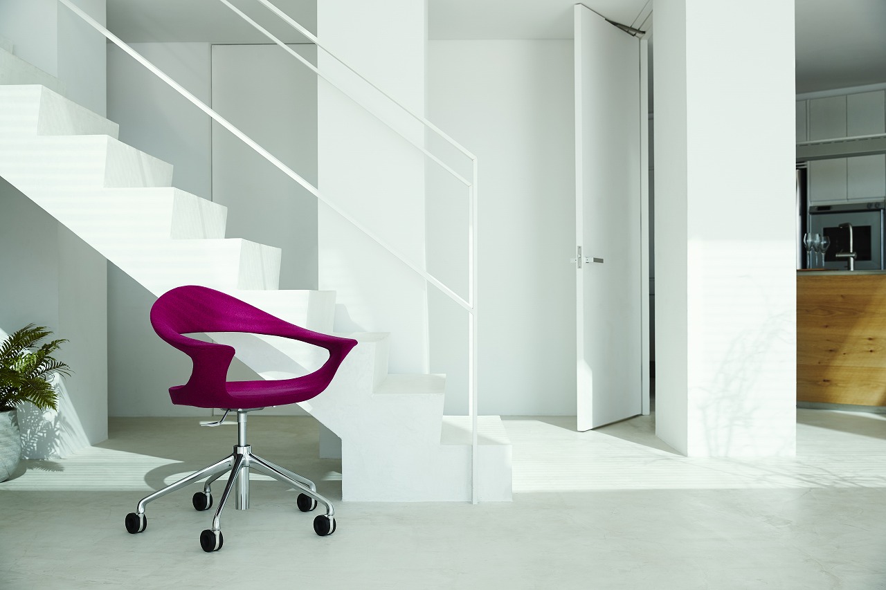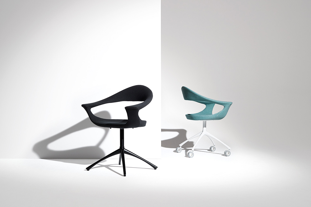 身体を支える骨盤をモチーフとしながら、柔らかさを感じさせる有機的なフォルム。背もたれから座面へとつながる美しい曲線が、座る人を優しく包み込みます。京都工芸繊維大学とのコラボレーションから誕生した、DESIGN LABO発のモデルです。骨をイメージしたアルミダイキャスト脚は、アジャスターとキャスターの2タイプ。エントランスやラウンジ、ミーティングシーンなどさまざまな場面に似合う8種類のカラーをご用意しました。