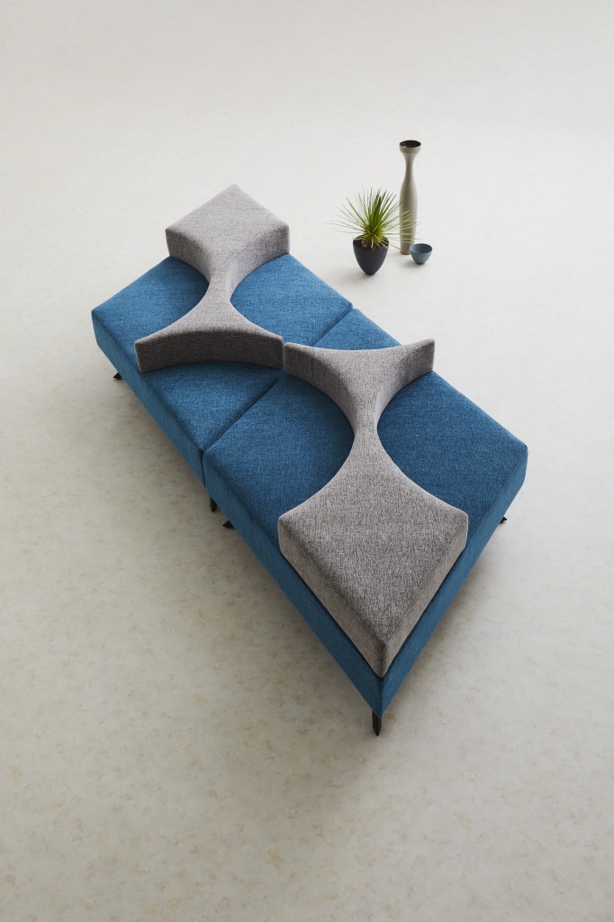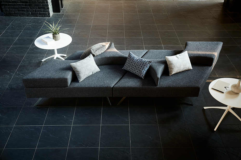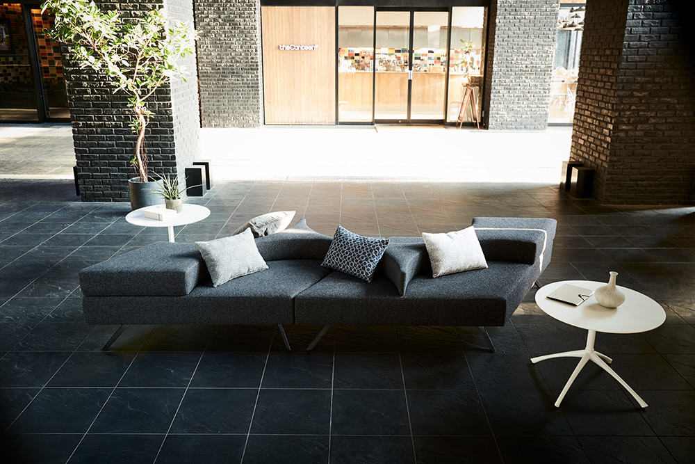 オフィスや施設の共用部など広い空間の中でもオブジェ的な存在感を放つ。組み合わせることで、さまざまなレイアウトのバリエーションが可能です。ラウンド型の座面はさまざまな座り方を可能にし、そこに集う人々の創造性を刺激します。オプションのクッションと組み合わせれば、より表情豊かに。