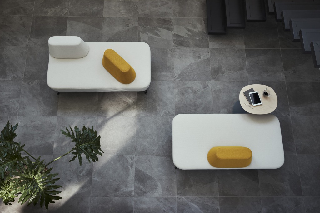 砂場にバケツで山を作るように、座にランダムに配置された背が特徴的なベンチです。背が自然と距離をとるよう誘導し、2人で座った時もパーソナルスペースを守ります。バリエーションによって、様々な座り方を可能にし、サイドテーブルを置くなど、組み合わせによって用途が広がります。脚部はWNA、BRの2種類。