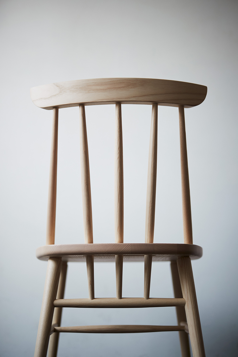 ホワイトアッシュ材の風合いを活かした、ナチュラルな印象のウィンザーチェアです。クッション付きの座面は座り心地も快適。座面を貫く背面のスポークが描き出す、抜け感のあるバックスタイルが、空間を軽やかに彩ります。