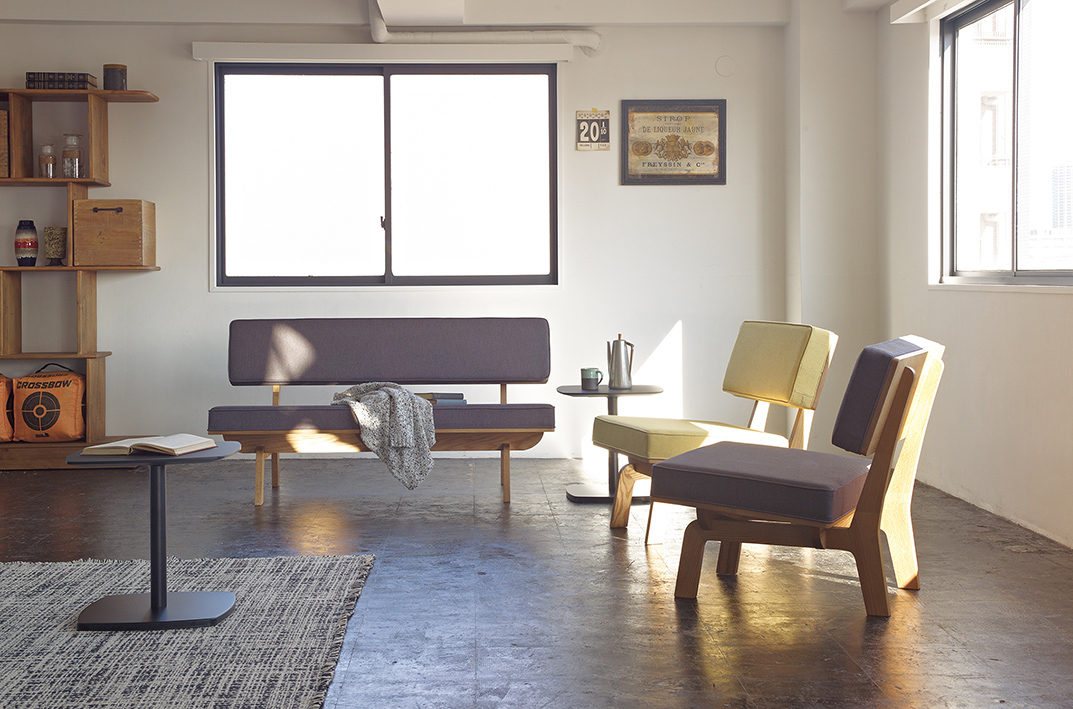 クリエイティブ集団“graf ”の活動初期に発表され、以来ロングセラーを誇るサブロクソファのデザインを継承。シンプルでありながら無垢材が温かい雰囲気を醸し出します。