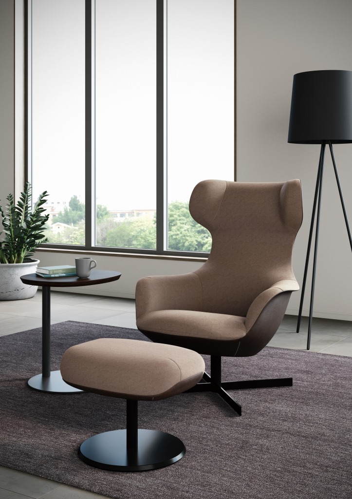 ハイバックで緩やかに傾斜した背と、低めのシートハイで広めの座面を持ったケイトは、柔らかな背と座面で包まれている様な座り心地です。モルスカをオットマンとして組み合わせることで、さらに快適な座り心地をお届けします。
