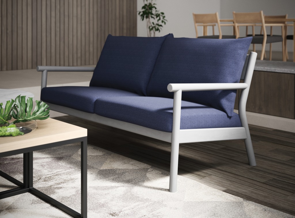 北欧のモダンさをイメージさせる、木をふんだんに使ったスコーブ。コンパクトながらちょうどよい硬さのクッションで快適な座り心地です。カラーはナチュラルなイメージのWNAとモダンなグレーをご用意しました。同じシリーズのアームチェアとのコーディネートも可能です。