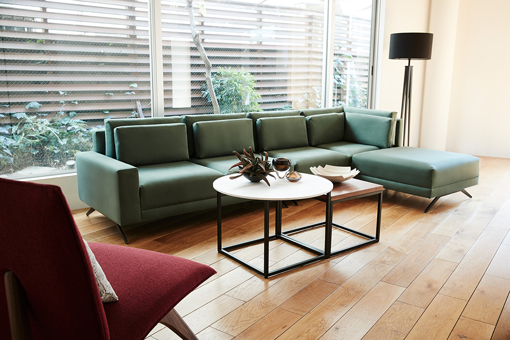 上質のやすらぎとラグジュアリーな空間を創造。包み込むような座り心地にこだわったソファ。仕上げ感とクッションの柔らかさが、高級感を演出します。コーナーセットが可能で、様々なシーンに使用できます。