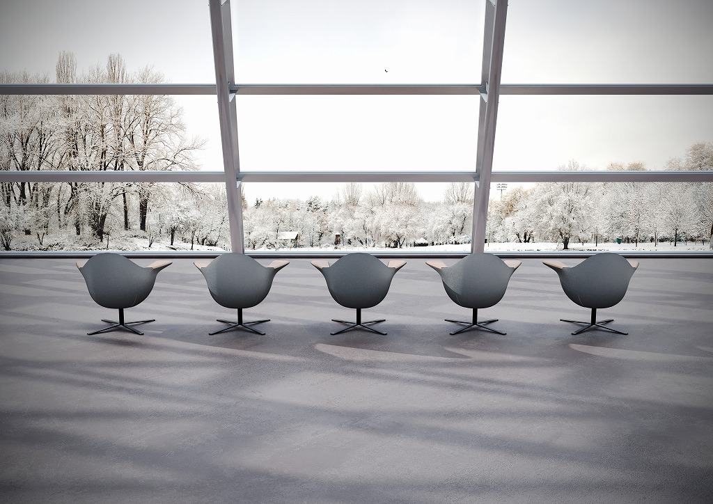 Divina MDは、見る角度によって色の深みが美しく変化するメランジュ色が特徴です。平織した布に水と熱を加えて加工し、糸を収縮させることで生まれるフェルトのような魅力的な質感は、滑らかで触り心地がよく、耐久性に優れています。素材には上質な天然ウールを100%使用。汚れにくく、難燃性と耐光性の特徴も合わせ持ち、張り上げた時の美しさは、家具そのものや空間をアップグレードしてくれる気品を漂わせています。伸縮性に優れているため、一般的な生地では難しい有機的なフォルムの家具にもご使用いただけます。