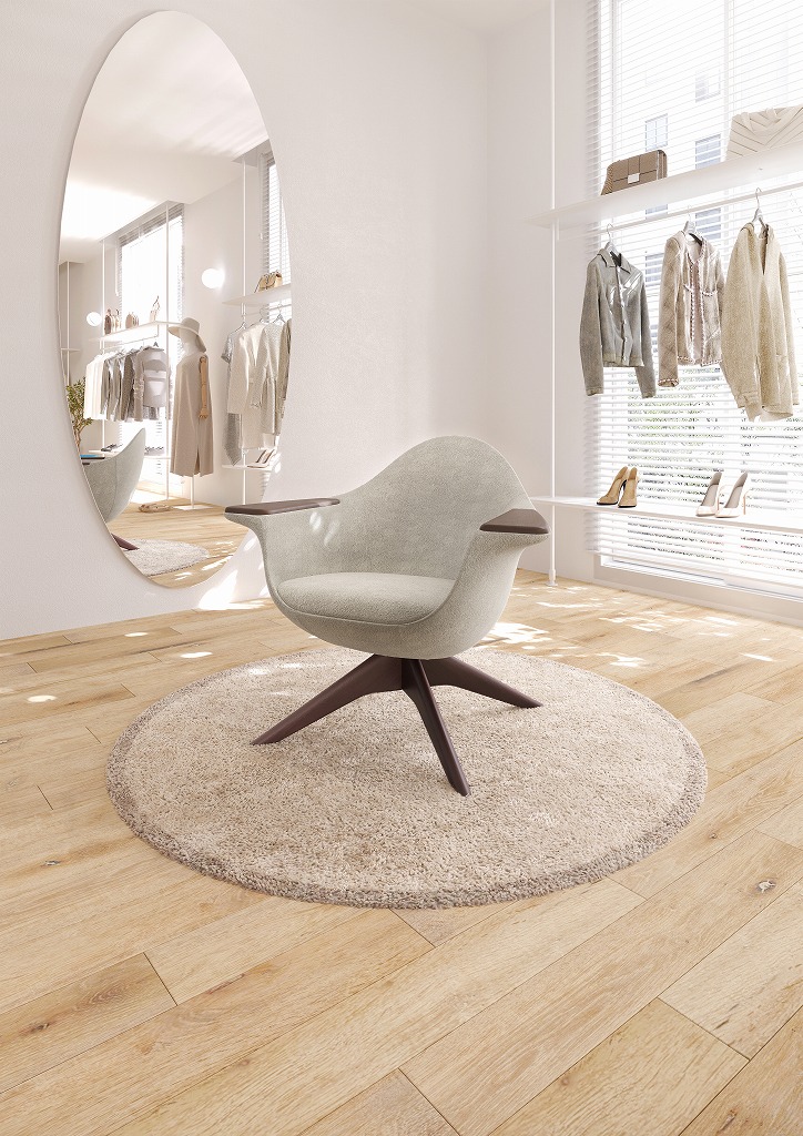 しっとりとした手触りと上品な風合いが空間に温もりをもたらし、座る人にほのかな安らぎを与えます。