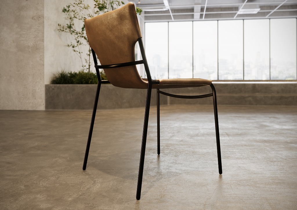 布製の自由な座面が体型に柔軟にフィットし、快適な座り心地を実現。座面とフレームは分解可能で、環境にも配慮した設計です。座面が布地であるため、スタッキング跡を残しにくく、肘無しで約4.5kg、肘付きで約5.5kgと軽量で持ち運びやすいチェアです。
