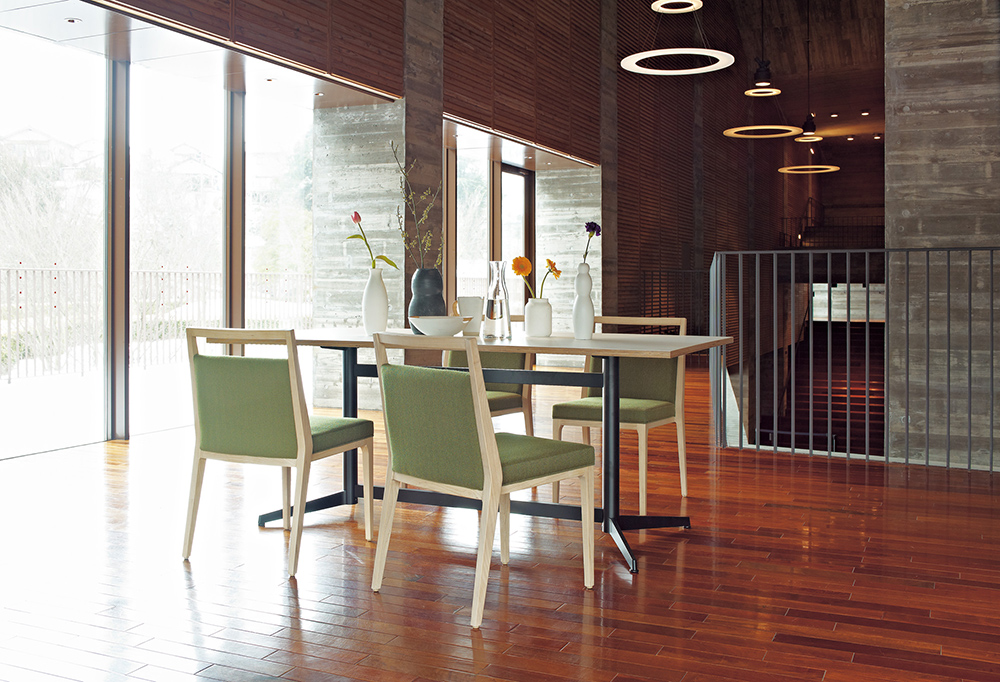 しっとりとした手触りと上品な風合いが空間に温もりをもたらし、座る人にほのかな安らぎを与えます。