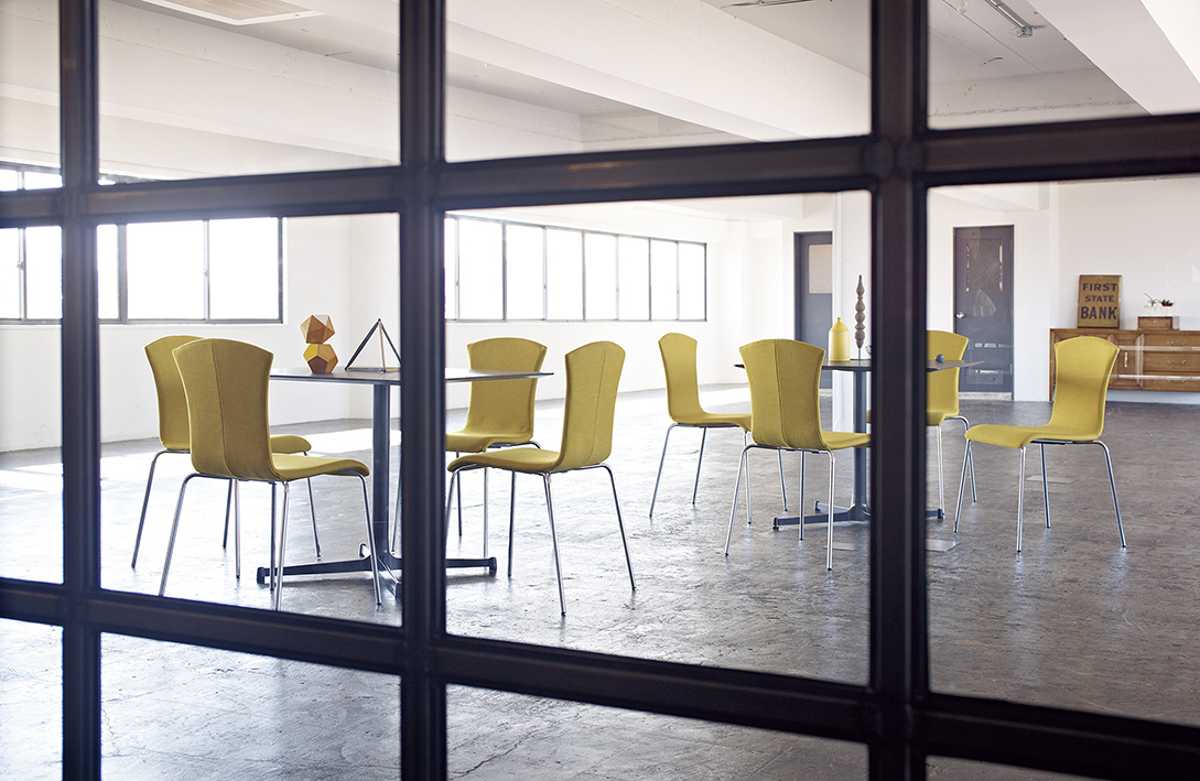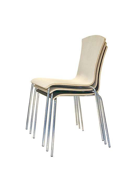 イタリア製メラミンの質の高さとその見た目に対するコストパフォーマンスの高さが魅力的な成型合板チェア。イチョウの葉をモチーフにしたデザインがやさしい空間を演出します。スチールフレームにはマットなブラックの粉体塗装と、クロームメッキの2タイプをご用意しています。