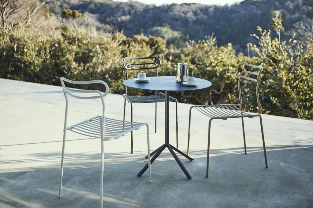 屋外で食事をする文化のあるイタリアでデザインされた、スチールパイプの曲線ラインが特徴的なスタッキングチェアです。屋根のあるテラスやベランダに置くことで開放的な空間のご提案を可能にしました。豊富なカラーと美しいラインによって、空間を楽しげに演出することができます。