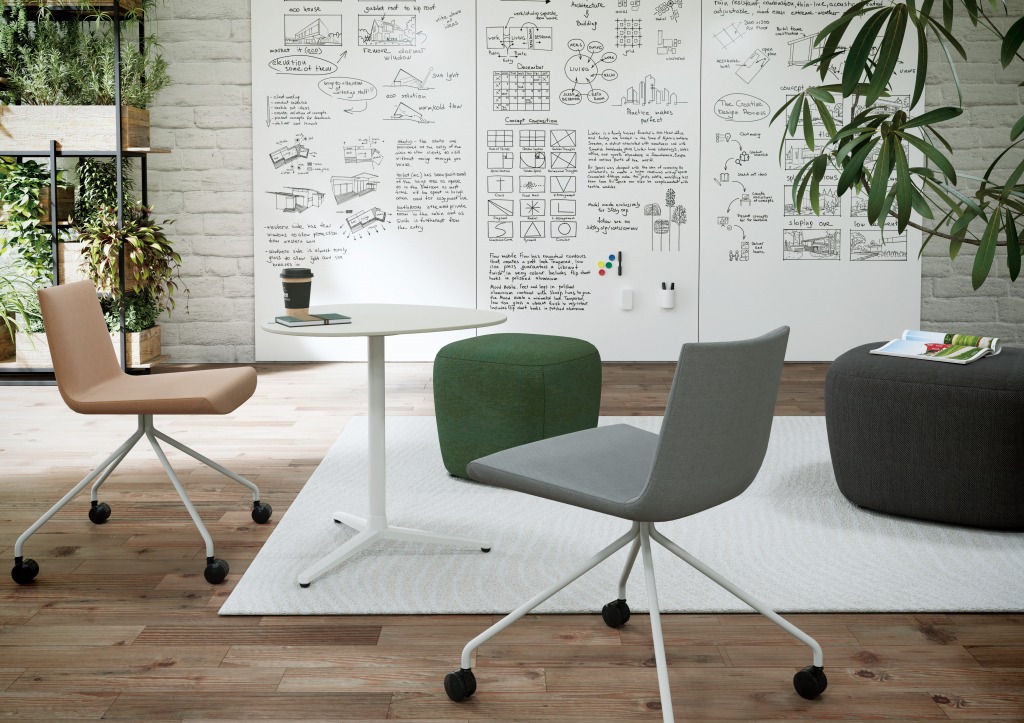 Divina MDは、見る角度によって色の深みが美しく変化するメランジュ色が特徴です。平織した布に水と熱を加えて加工し、糸を収縮させることで生まれるフェルトのような魅力的な質感は、滑らかで触り心地がよく、耐久性に優れています。素材には上質な天然ウールを100%使用。汚れにくく、難燃性と耐光性の特徴も合わせ持ち、張り上げた時の美しさは、家具そのものや空間をアップグレードしてくれる気品を漂わせています。伸縮性に優れているため、一般的な生地では難しい有機的なフォルムの家具にもご使用いただけます。