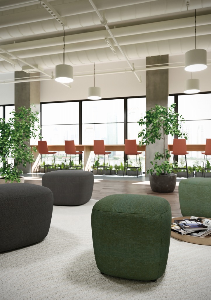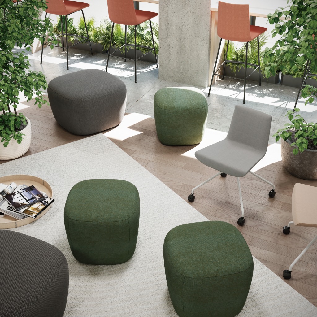 丸みを帯びゆったりとしたフォルムのスツールです。縫製ラインが角に入ることで前後を作らず、ランダムな配置にも違和感なくレイアウトして頂けます。SとLの2サイズをご用意しております。