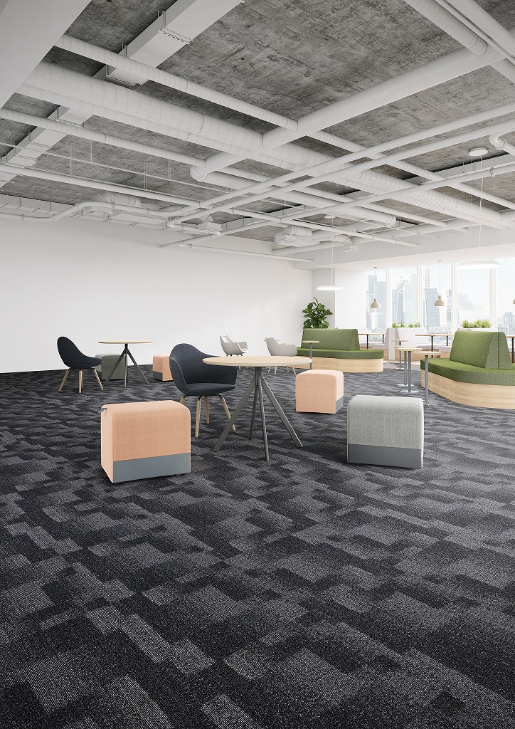 ブクレ糸を使用したMemory 2は、絶妙な不規則性のある模様が特徴です。織りが詰まっていない部分では、裏地のテキスタイルが表面に姿を現し、それによってまるで10年間使い込んだラグのように美しく時を重ねた素材の雰囲気が見事に表現されています。ポリエステル難燃繊維トレビラCSを使用しており、耐久性と難燃性にも優れているため、コントラクトのさまざまなシーンでお使いいただけます。