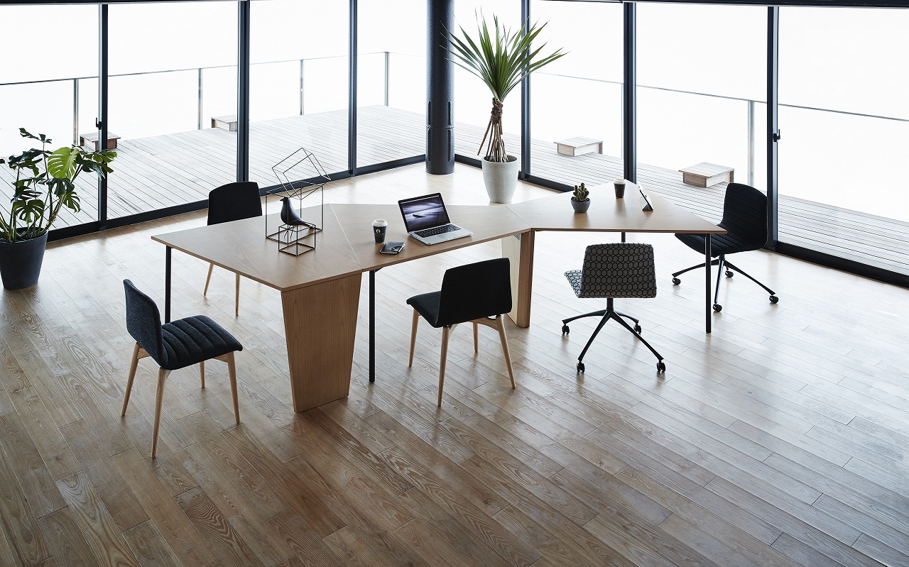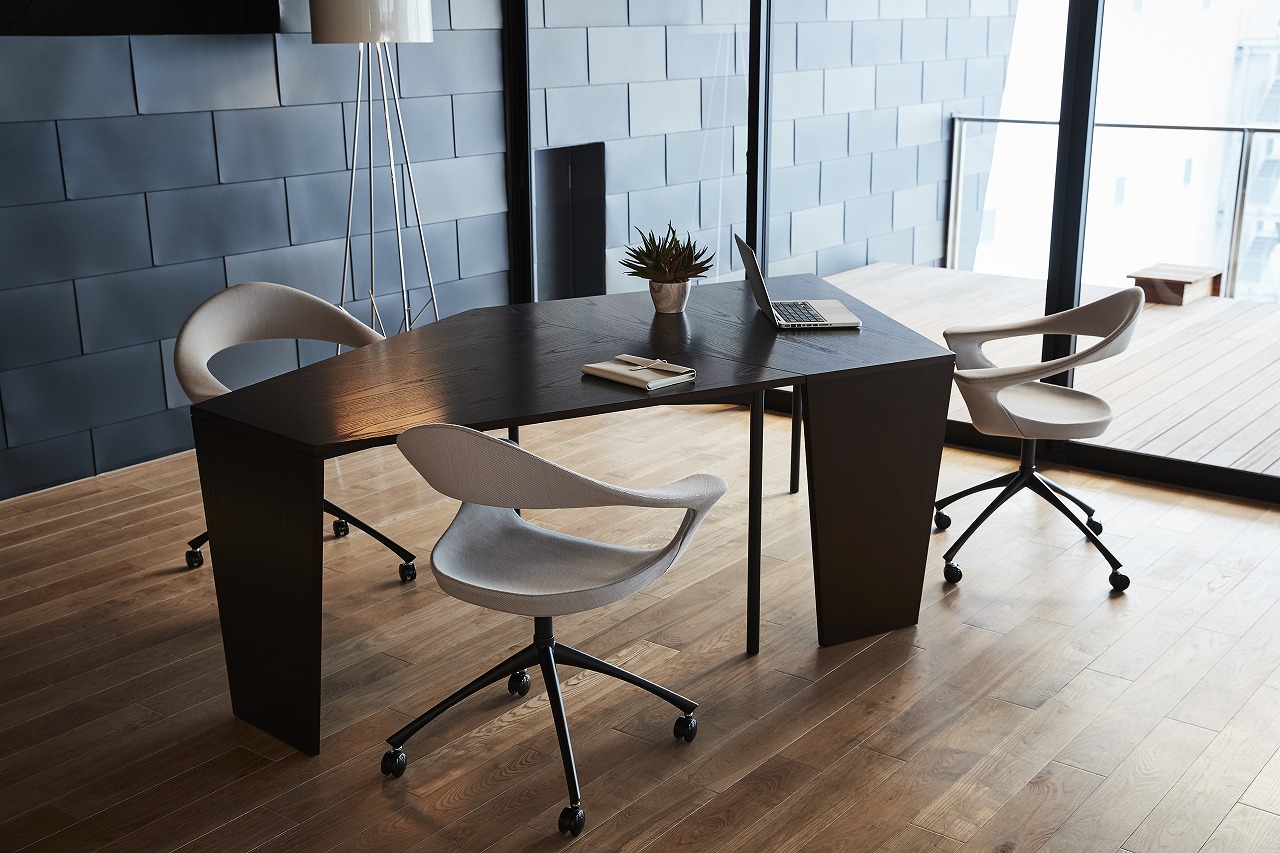 コミュニケーションを活性化させ、人と人の繋がり“Meetalk”を体現する、SOGOKAGUオリジナルの組み合わせテーブル。規則性をもった台形のフォルムの天板が、さまざまな組み合わせ方を可能にします。ホワイトアッシュ材の天板は、ナチュラルとブラウンの2色展開です。