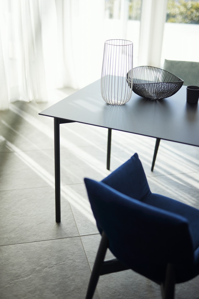 薄さが際立つ船底型のオリジナル天板を活用した、シャープなデザインのテーブルシリーズです。天板、脚部共に豊富なバリエーションをもち、多様なコーディネートに対応します。